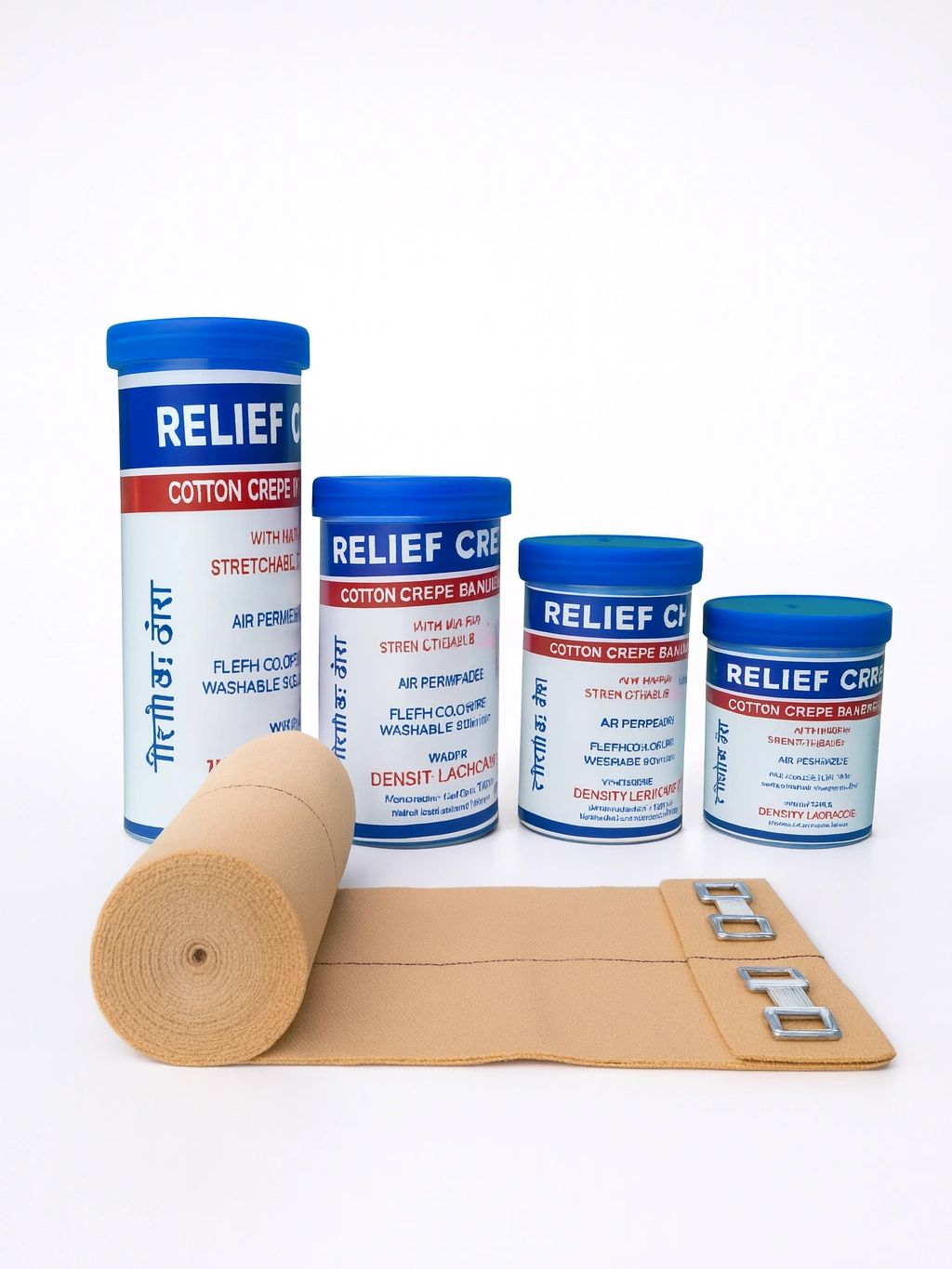 Find immediate comfort and effective relief for minor injuries and muscle aches with the Relief Crepe Bandage.